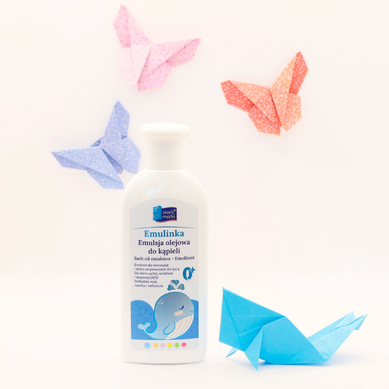 "Emulinka" - Emulsja olejowa do kąpieli przeznaczona dla niemowląt i dzieci od pierwszych dni życia. Dla dorosłych z przesuszającą się, wrażliwą skórą.
